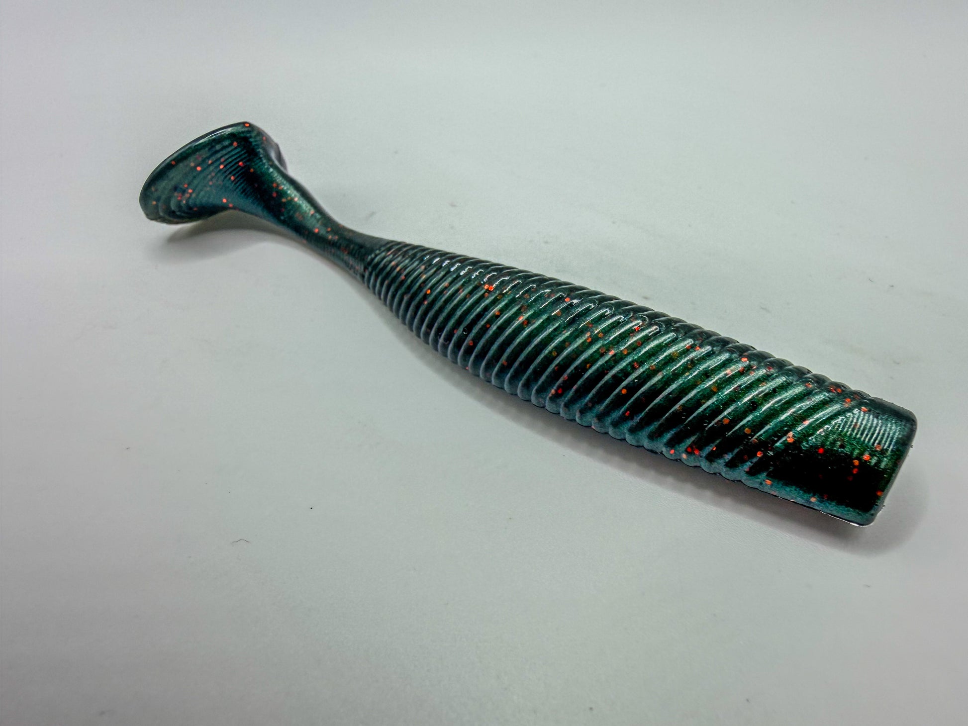 The Thumper is a 3.75” paddle tail swimbait built to move water and trigger aggressive strikes. Designed with a thick kicking tail, this bait produces a strong thumping action that bass can feel from a distance. Whether you’re slow rolling it along the bottom, swimming it through grass, or burning it over structure, the Thumper delivers a natural swimming motion that keeps fish coming back.